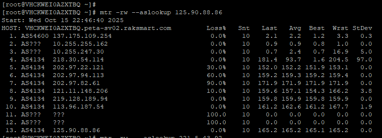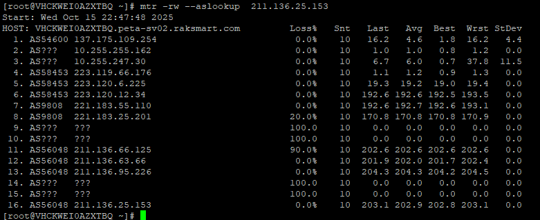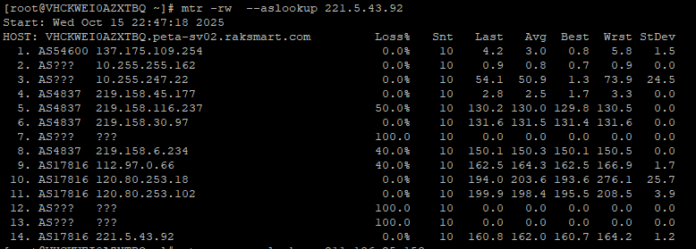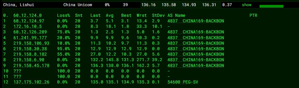 3.3.1 ping.pe 国内联通节点去程 MTR 如下图
