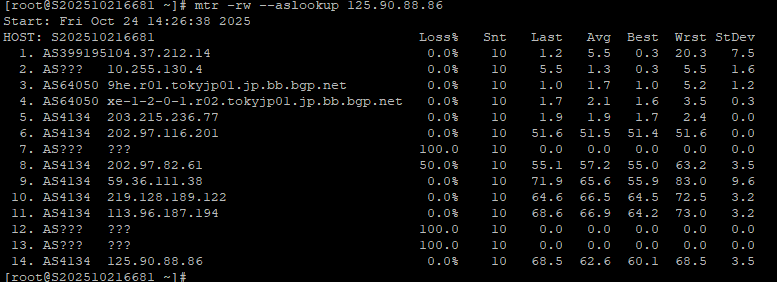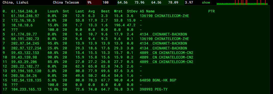 3.5 中国电信回程 MTR 测试 如下图