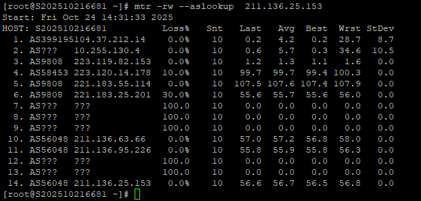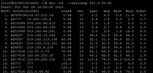 3.7 中国移动回程 MTR 测试截图