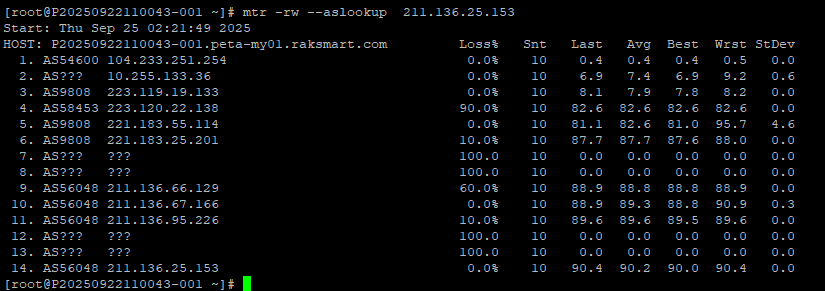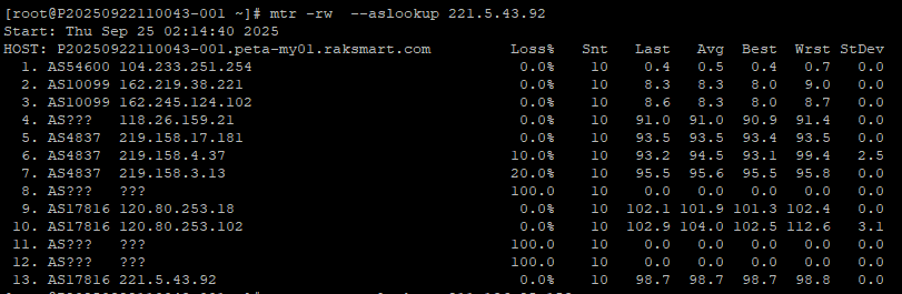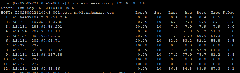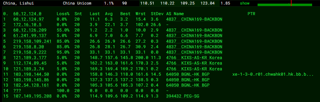 3.3.1 ping.pe 国内联通节点去程 MTR 如下图