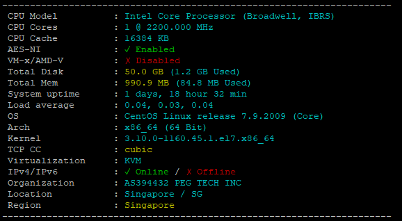 SG 1024 | 1 CPU Cores | 1024M | HDD 25GB | 大陆优化 5M | 1IP | $0.013007 /小时 | $7.96 /月 | 立即购买 |