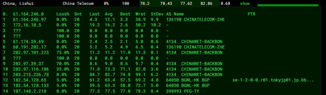 3.5 中国电信回程 MTR 测试 如下图