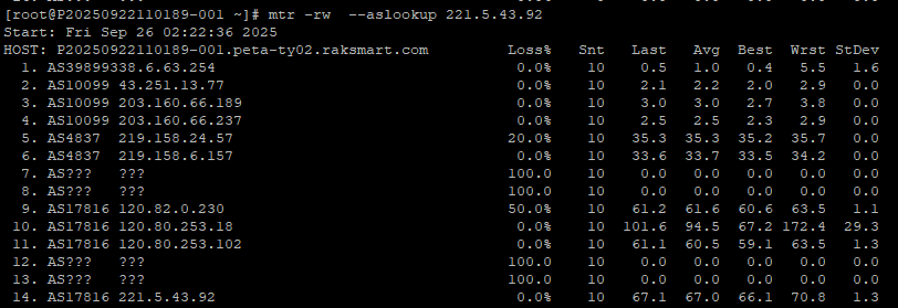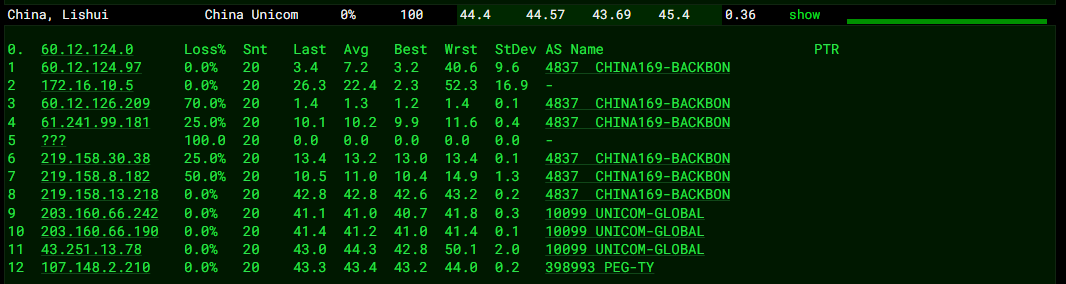 3.3.1 ping.pe 国内联通节点去程 MTR 如下图