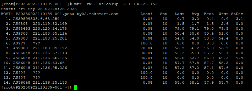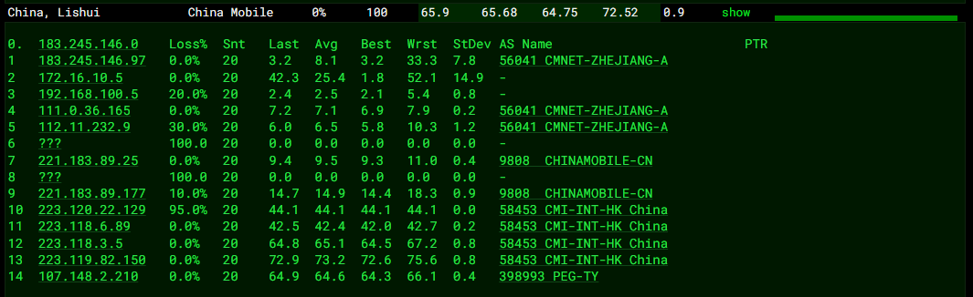 3.7 中国移动回程 MTR 测试截图