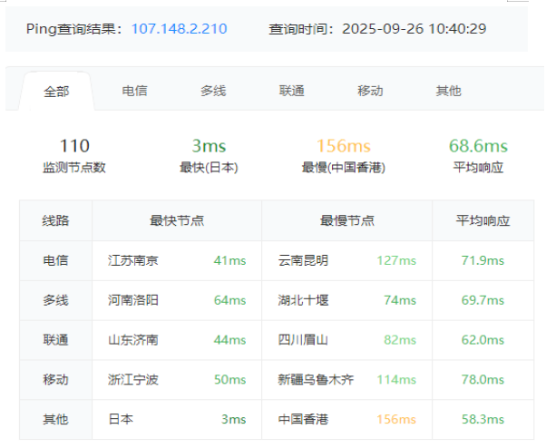 3.2 itdog 国内多点电信 Ping 如下图