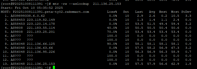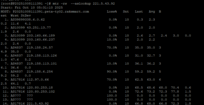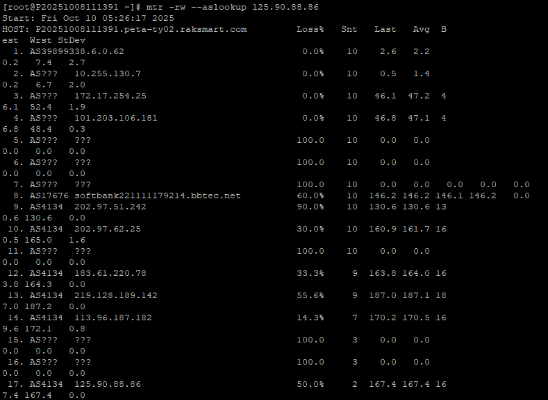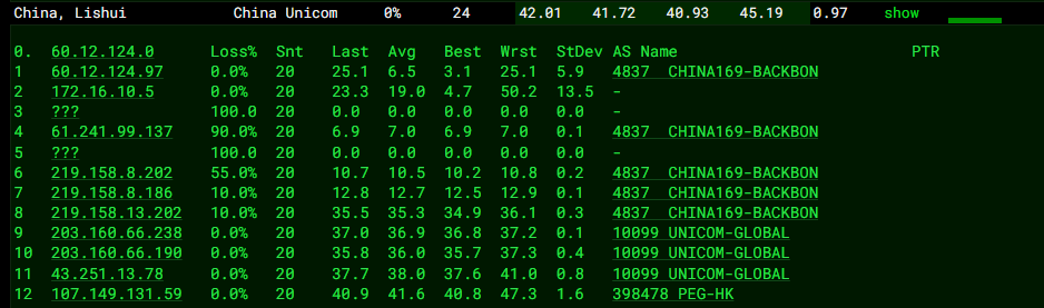 3.3.1 ping.pe 国内联通节点去程 MTR 如下图