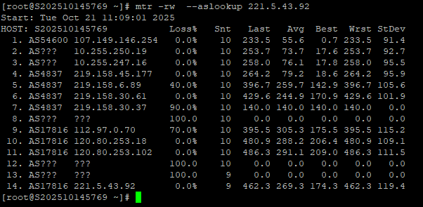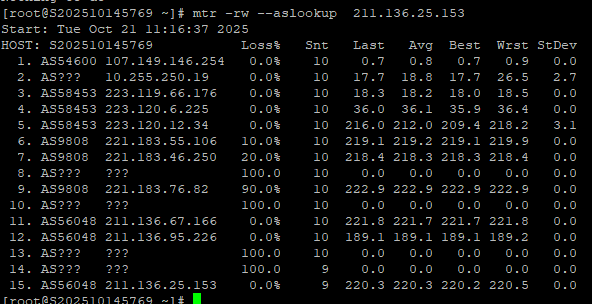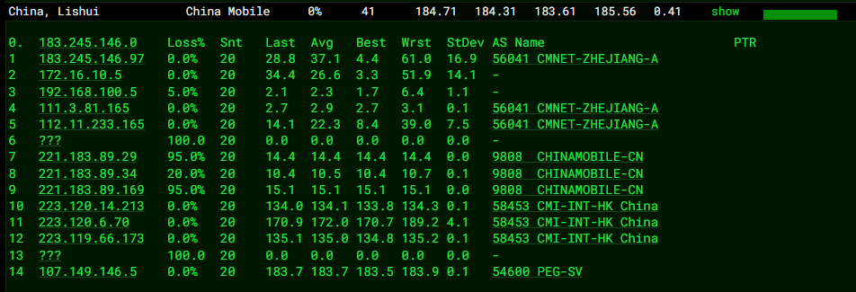 3.7 中国移动回程 MTR 测试截图