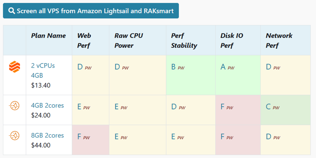 评测小结:在与云计算巨头亚马逊的对比中,RAKsmart以更低的价格($13.40 vs $24.00),实现了全方位的性能领先。尤其是在决定数据库、文件读写效率的硬盘IO上,RAKsmart荣获A级评价,而价格更高的Lightsail仅为F级,差距悬殊。