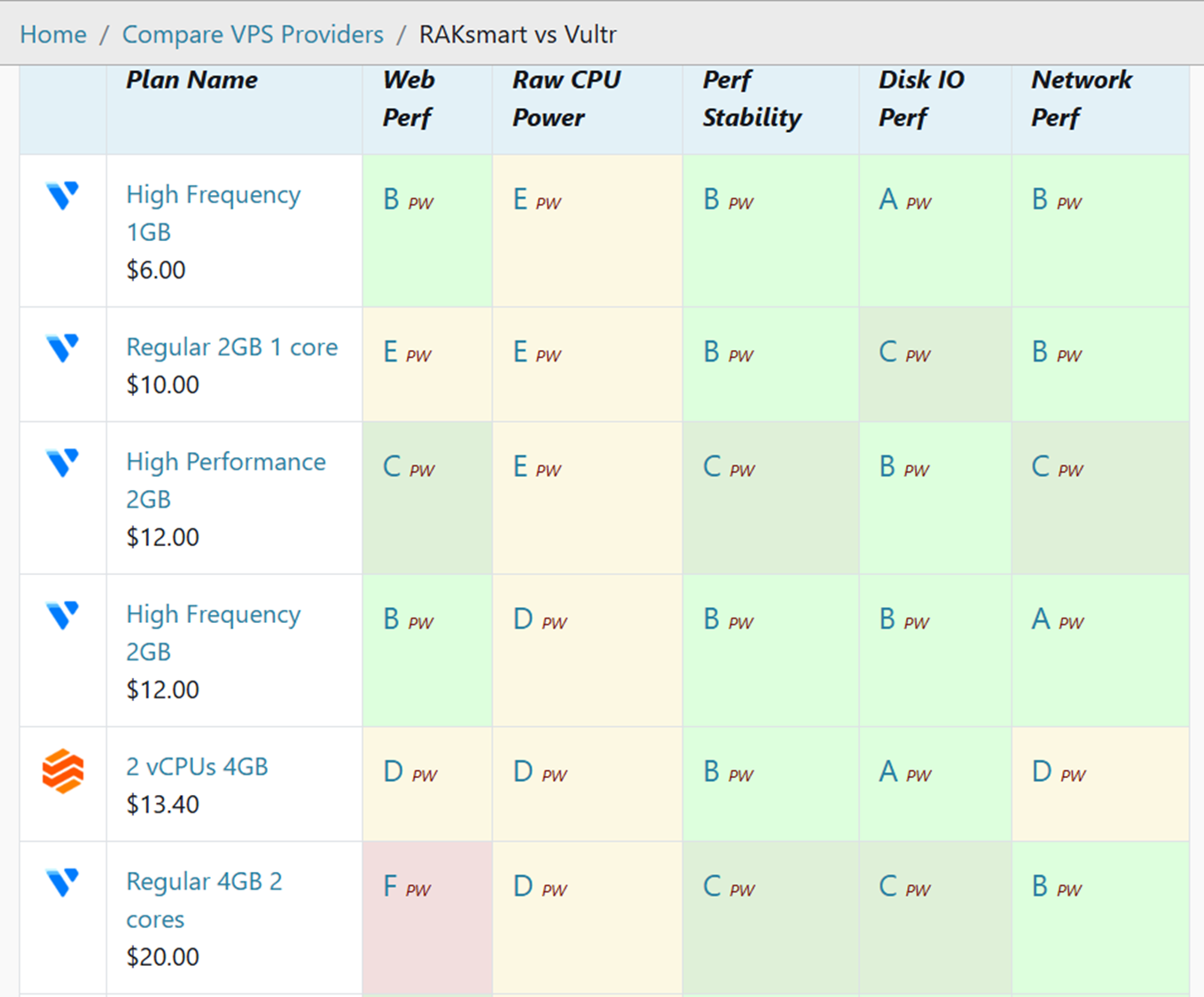 评测小结:Vultr的高频机型在网络和Web性能上表现出色。然而,RAKsmart在核心的性能稳定性和硬盘IO上更胜一筹。当我们将配置拉齐到4GB内存时,RAKsmart以$13.40的价格提供了A级硬盘IO和B级稳定性,而Vultr同内存规格的常规机型价格更高($20.00),且这两项关键指标均落后(C级)。