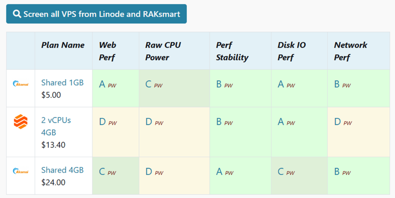 3. 卓越的性能稳定性:在“性能稳定性”这一项上,RAKsmart普遍获得B级评价,优于许多竞争对手,保证了您的业务在高峰时段也能平稳运行,不受邻居用户影响。