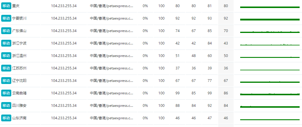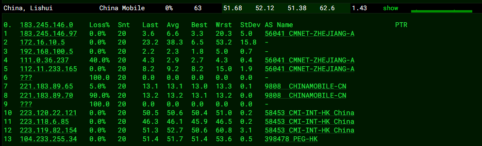 3.4.1 ping.pe 国内移动节点去程 MTR如下图