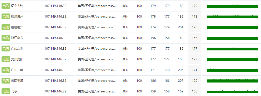 ping.pe 国内电信、联通、移动节点去程、