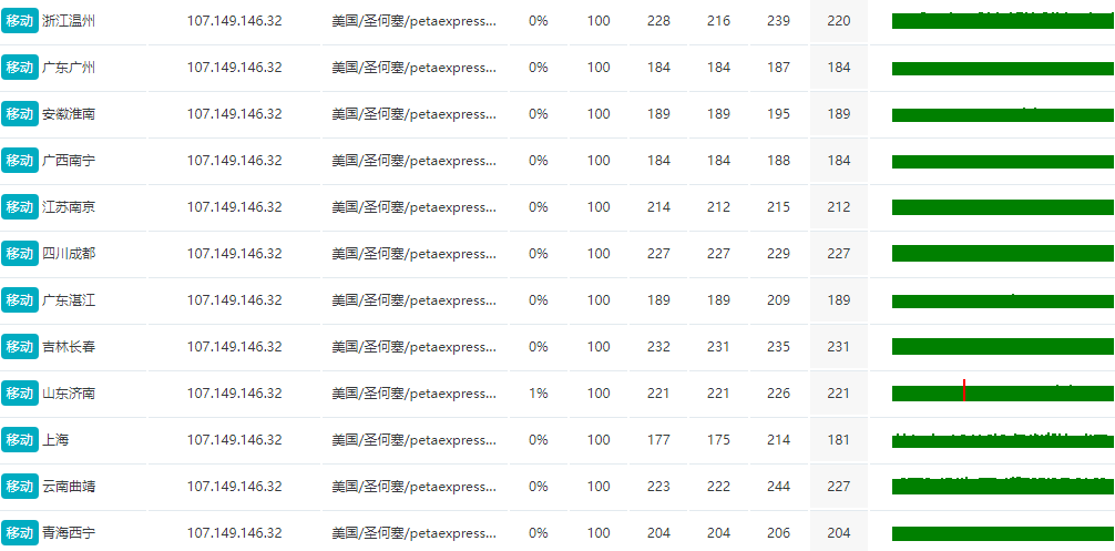 itdog 国内多点电信 Ping 、联通Ping 、移动 Ping如下图
