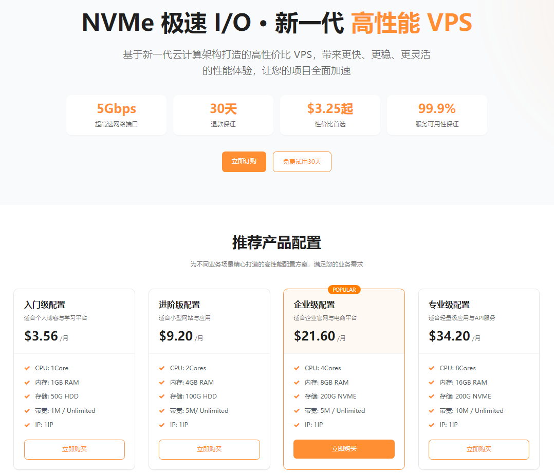 - 常见配置采用SSD与KVM虚拟化,提升IO性能与隔离性。