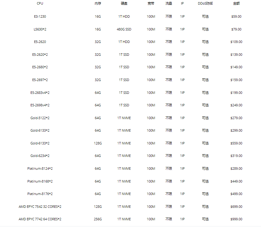 RakSmart提供从入门到高端的多种硬件配置选择,所有服务器均采用品牌企业级硬件(如英特尔至强处理器、DDR4内存、企业级SSD/HDD),保障了卓越的I/O性能和可靠性。用户可以根据业务负载(如大数据分析、高流量网站、游戏服务器、虚拟化等)灵活选择CPU核心数、内存大小、存储类型和RAID方案,实现真正的量身定制。