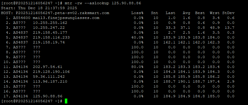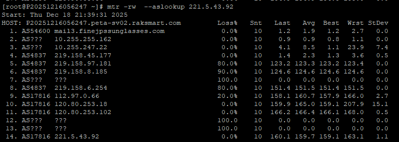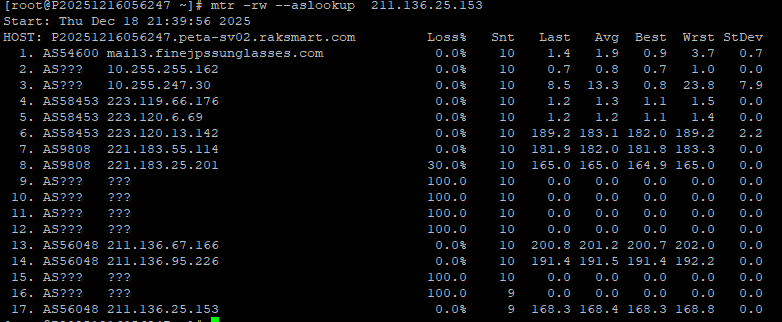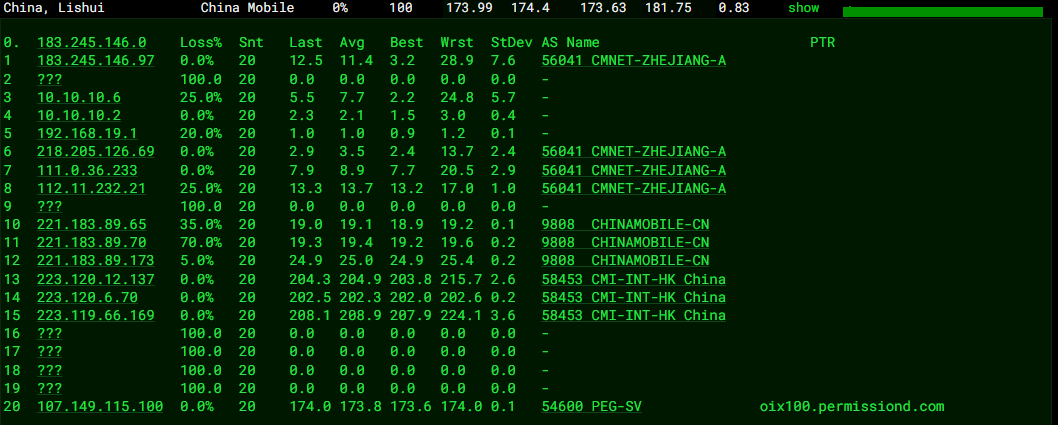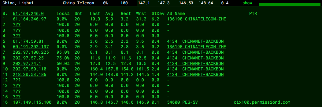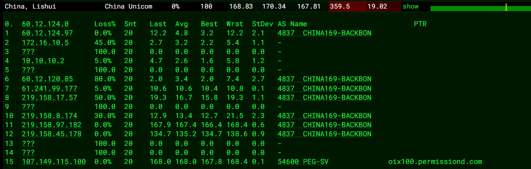 中国电信回程、中国联通回程、中国移动回程 MTR 测试 如下图