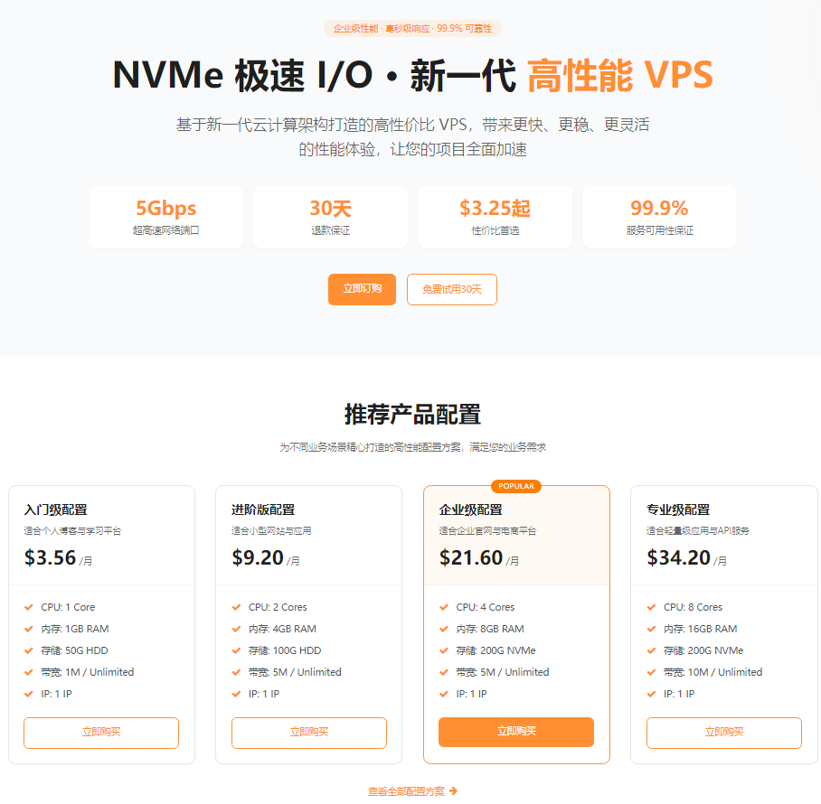 | 企业官网 | 1 核 CPU+2GB 内存 + 30GB NVMe+10Mbps 带宽 | 低成本搭建全球可访问的企业展示平台,快速提升品牌国际影响力 |
